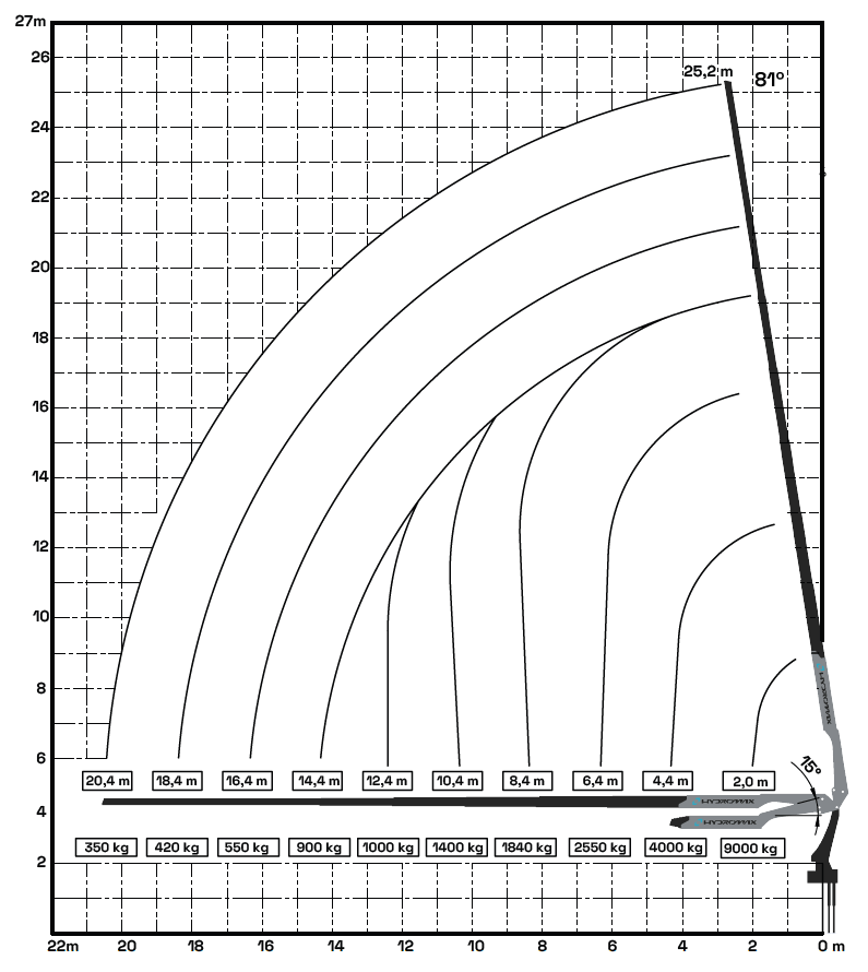 – Alcance máximo hidráulico – vertical:…………………18,1 m