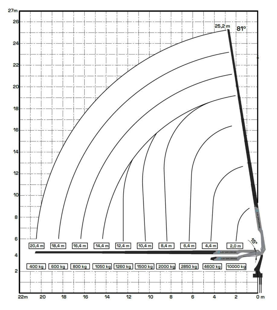 – Alcance máximo hidráulico – vertical:…………………18,1 m