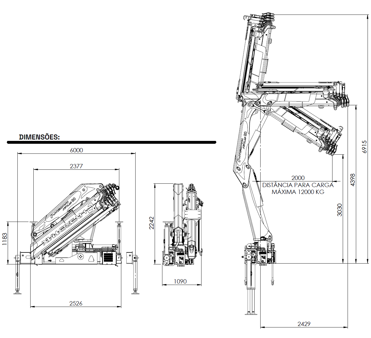 – Abertura dos estabilizadores:………………………6.000 mm