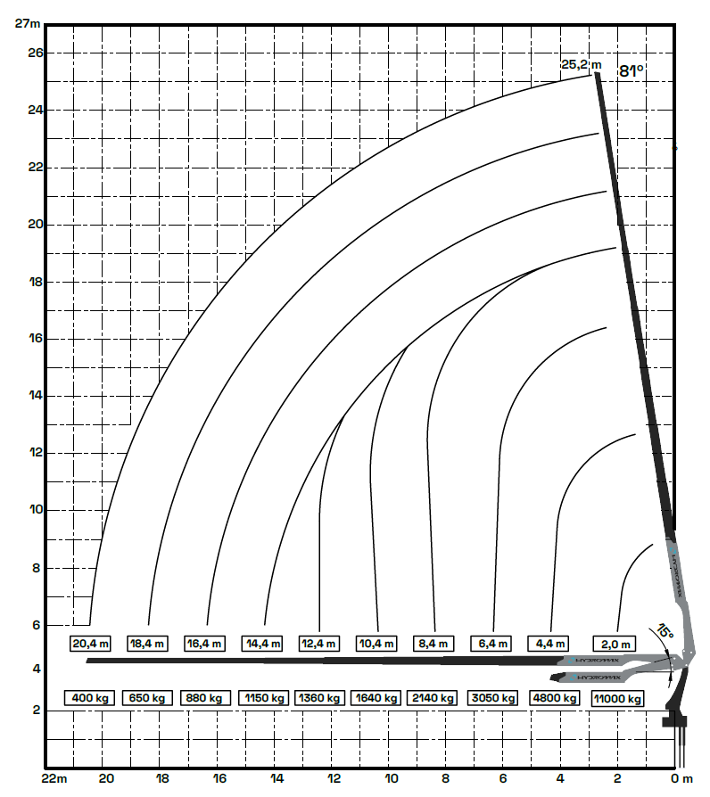 – Alcance máximo hidráulico – horizontal:……………..14,4 m